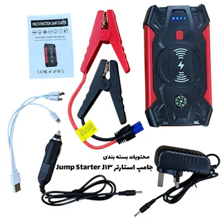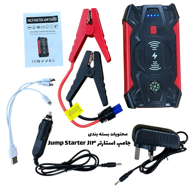 شاید تا به حال برای بسیاری از شما پیش آمده باشد که به واسطه خرابی باطری ماشین یا وجود ایراداتی در آن، در جاده مانده باشید. این محصول جامپ استارتر حرفه ای ماشین است.جامپ استارتر که از آن به عنوان پاور بانک نیز می توانید استفاده کنید باتری قدرتمندی است که بهطور خاص برای تأمین برق موردنیاز خودرو قابل استفاده قرار میگیرد.پیشنهاد جذاب به شما که حرفه ای سفر و کمپینگ میروید، جامپ استارتر مدل J13 با ظرفیت باتری 99800میلی آمپر میباشد. این دستگاه گزینه ای خوب برای کمپینگ حرفه ای و تمامی مسافرت های شماست و با سایز استاندارد ، مناسب برای تمامی خودرو های شهری و آفرودی می باشد. این محصول دارای چراغ قوه وصفحه نمایش است. J13 از طریق برق شهری (۱۰۰-۲۴۰ ولت) توسط آداپتور موجود در بسته بندی، شارژ می شود.مدل J13 در مدت زمان ۴تا۶ ساعت (بستگی به جریان و ولتاژ) شارژ میشود و دمای ذخیره سازی این محصول(-40-+65ºC ) می باشد ، شامل نازلهای مختلف برای باد کردن خودرو،موتورسیکلت،دوچرخه،توپ و قایقبادی است. برای این جامپ استارتر پورت USB برای شارژ گجت های همراه در نظر گرفته شده.میتوان از ویژگی های این محصول به پشتیبانی از چراغ قوه و سیگنال SOS اشاره کرد.این دستگاه پشتیبانی سیستم شارژ وایرلس را دارد که قابلیت فست شارژ ۱۰ولت برای سیستم عامل اندروید و ۷.۵ ولت برای سیستم عامل IOS را پشتیبانی میکند. همچنین باتری ۱۲ولت لیتیوم را داراست. | ویژگی های جامپ استارتر J13 :طراحی بسیار جمعوجور دارای شارژ وایرلس تکنولوژی باتری بهتر و جدیدتر ظرفیت باتری بیشتر و زمان شارژ کمتر پورتUSB برای شارژ دستگاههای الکترونیکی چراغقوه LED برای روشنایی محیط سیگنال SOS قطب نما مناسب برای خودروهای سنگین و غیرسنگین |