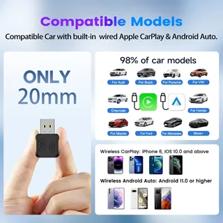 دانگل وایرلس کارپلی و اندروید اتو کارلینکیت مدل Mini Ultra، تجربهای نوین از اتصال بیسیم و بدون دردسر به خودروی شما ارائه میدهد. با این دستگاه، از موزیک، نقشه و پیامها بدون نیاز به کابل لذت ببرید. نصب آسان، سازگاری با اکثر خودروها و سرعت اتصال بالا، رانندگی شما را هوشمندانهتر میسازد!