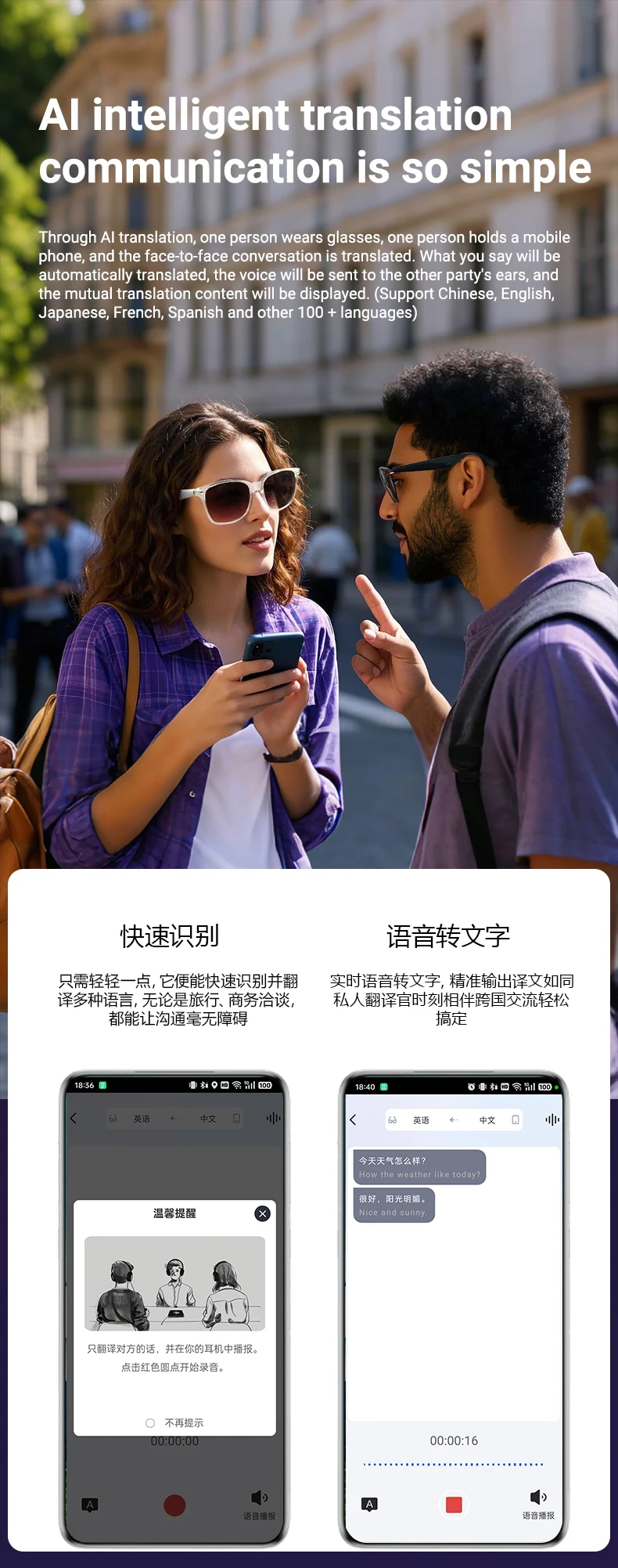 **ترجمهی همزمان هوش مصنوعی:** پشتیبانی از **ترجمهی زنده در بیش از 100 زبان**، ایدهآل برای سفرهای بینالمللی و ارتباطات چندزبانه.