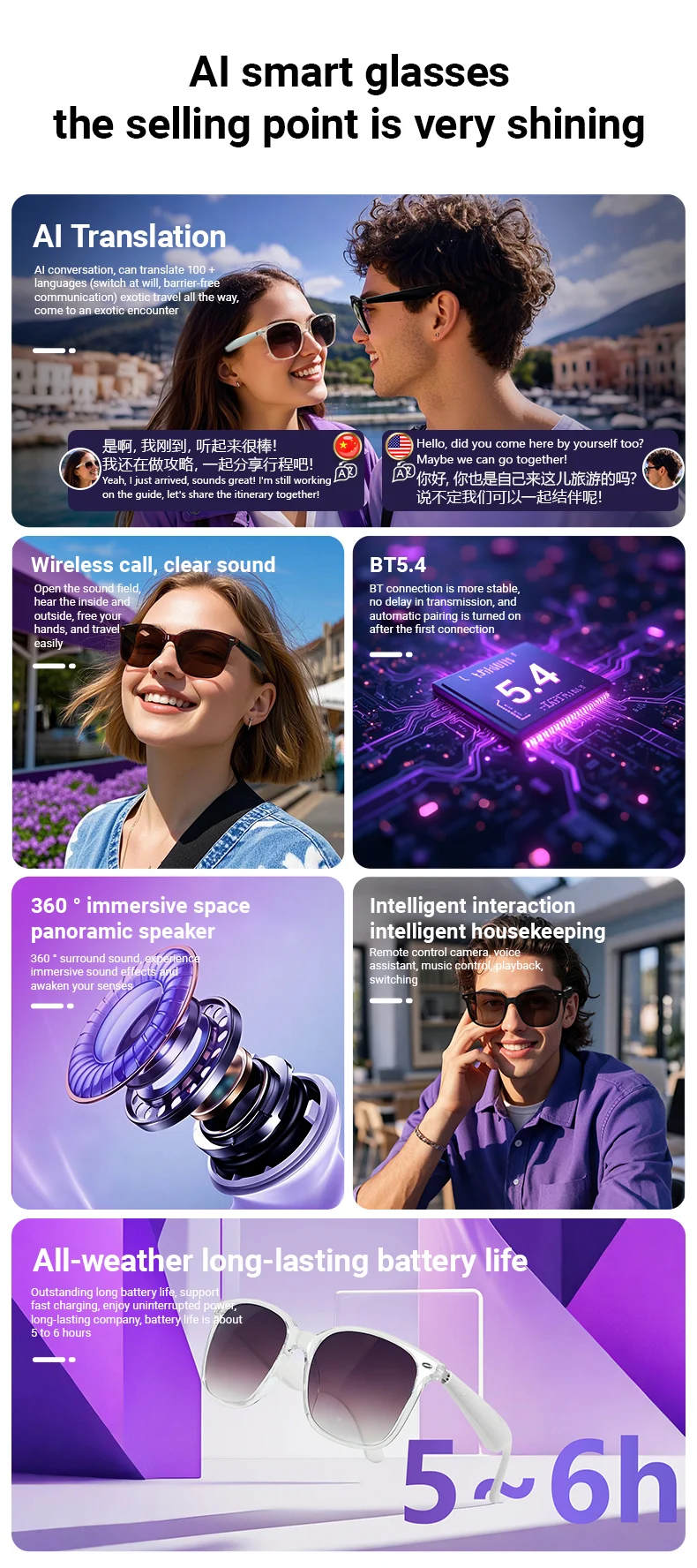 **عینک هوشمند iSEN GY500** یک محصول **پیشرفته و چندکاره** است که ارتباطات شما را آسانتر و تجربهی شنیداری شما را ارتقا میبخشد. با **ترجمهی همزمان هوش مصنوعی**، **بلوتوث نسخه 5.4** و **بلندگوهای دوگانه با صدای فراگیر**، این عینک راهکاری مدرن برای دنیای ارتباطات ارائه میدهد.