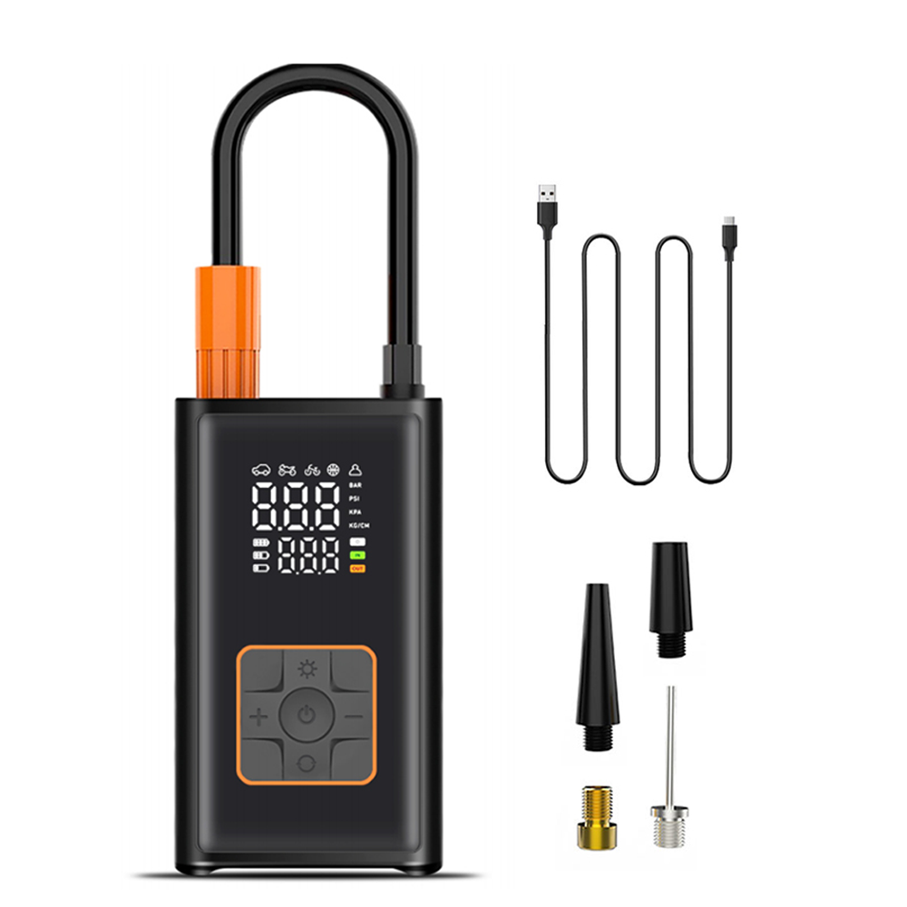 بادکننده لاستیک شارژی با 4 حالت باد از پیش تعیین شده برای باد کردن دوچرخه، موتور سیکلت، اتومبیل و توپ، به طور خودکار با رسیدن به مقدار از پیش تعیین شده متوقف می شود، استفاده آسان برای مبتدیان.