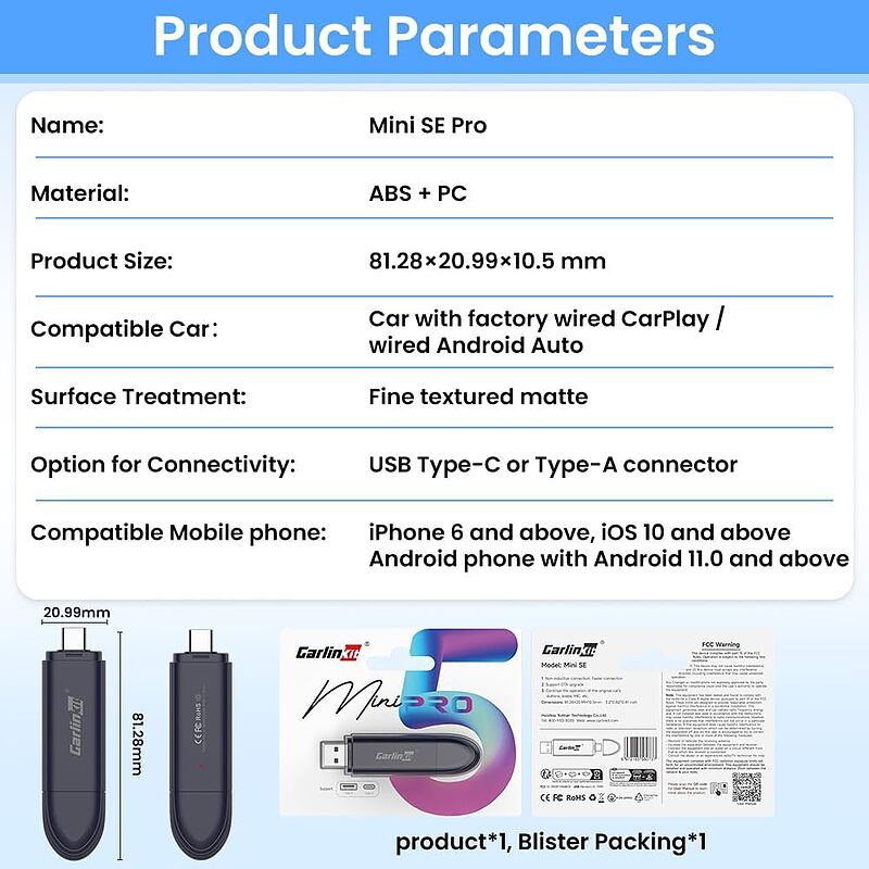 اتصال USB دو سره همه کاره: Carlinkit MINI SE PRO که مجهز به پورتهای USB-A و USB-C است، با طیف گستردهای از مدلها و سیستمهای خودرو سازگار است. این طراحی دو سره، نصب آسان و عملکرد بهینه را تضمین میکند و آن را به انتخابی همه کاره برای هر وسیله نقلیه تبدیل میکند.